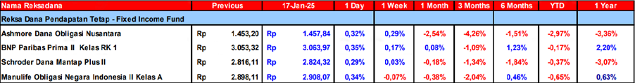 Penurunan suku bunga, umumnya akan mendukung pergerakan obligasi, dengan level imbal hasil (yield) yang lebih rendah, maka pergerakan harga akan lebih tinggi. Mulai 27 Januari hingga 20 Februari 2025, Kementerian Keuangan Indonesia akan kembali menerbitkan surat utang negara berdurasi rendah jenis Obligasi Ritel Indonesia. Hal ini tentu untuk mendukung berbagai kebijakan dan program pemerintah RI disepanjang tahun 2025. Tentunya, dalam mengatur portofolio investasi disarankan tidak hanya bergantung pada satu jenis obligasi saja, kamu harus mengimbangi obligasi berdurasi pendek tersebut dengan obligasi yang berdurasi lebih panjang, seperti FR 106 (15 tahun) dan FR 107 (20 tahun), atau kamu pun dapat memilih Reksa Dana Pendapatan Tetap dengan durasi menengah, dimana terdapat berbagai jenis obligasi pilihan manager investasi, seperti Reksa Dana Ashmore Dana Obligasi Nusantara, BNP Paribas Prima 2, Schroder Dana Mantap Plus II, dan juga Manulife Obligasi Negara Indonesia II.
