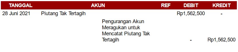 Piutang Tak Tertagih = Rp25,000 X 100 unit = Rp2,500,000