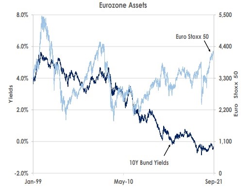 - The ECB’s prolonged printing of money as the pandemic recedes will benefit Eurozone equities but weigh on the EUR’s outlook.