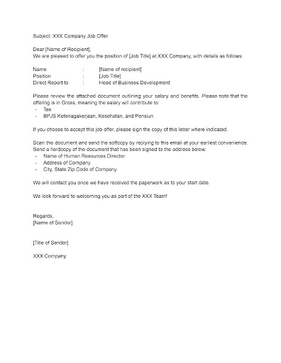 Contoh Surat Offering Letter dalam Bahasa Indonesia