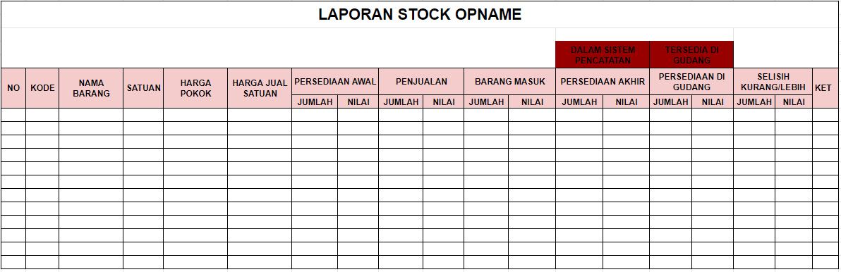 Nah berikut ini contoh laporan stock opname barang yang sering digunakan oleh perusahaan.