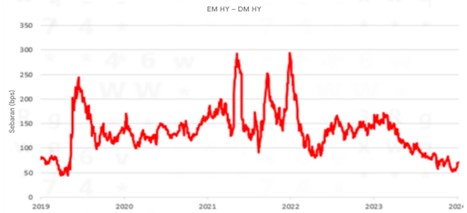 Lampiran 5: Peningkatan spread EM ke DM di HY tampak terbatas dibandingkan dengan sejarah