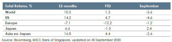 Source: Bloomberg, MSCI, Bank of Singapore as of 1 April 2020