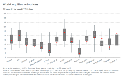 Sementara volatilitas tetap akan ada, kami percaya valuasi jangka panjang menjadi lebih menarik di pasar saham Cina, Hong Kong, dan Singapore dan secara bertahap kami menambahkan eksposur saham di pasar tersebut. Oleh karena itu, kami merubah posisi kami di Asia selain Jepang dan merubah posisi dari netral menjadi overweight. - Eli Lee