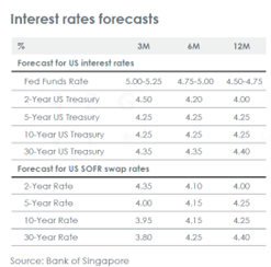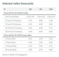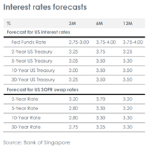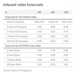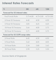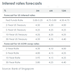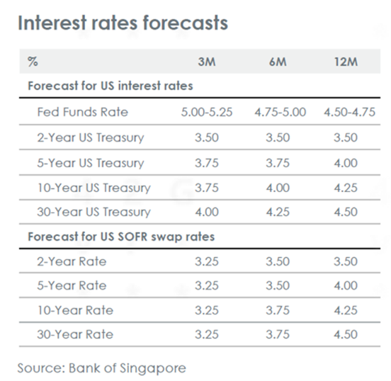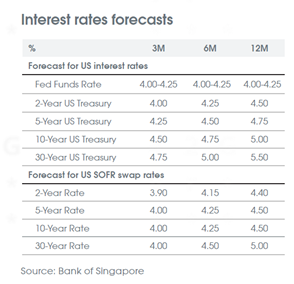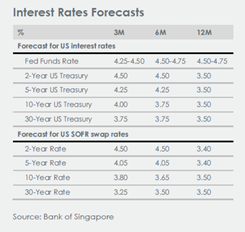 Perkiraan makroekonomi utama kami terhadap suku bunga Fed tetap di atas 4.00% sepanjang tahun 2025, imbal hasil UST 10 tahun meningkat menjadi 5.00% dan EUR mencapai 1.23 terhadap USD dalam 12 bulan ke depan.