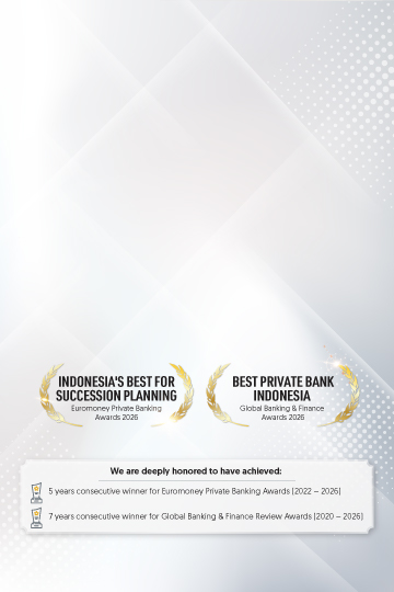 Berkat kepercayaan dan dukungan Anda, kami telah meraih penghargaan dari Euromoney Private Banking Awards 2025 untuk kategori Indonesia's best for succession planning dan Global Banking Finance & Review Awards 2025 untuk kategori Best Private Bank Indonesia 2025