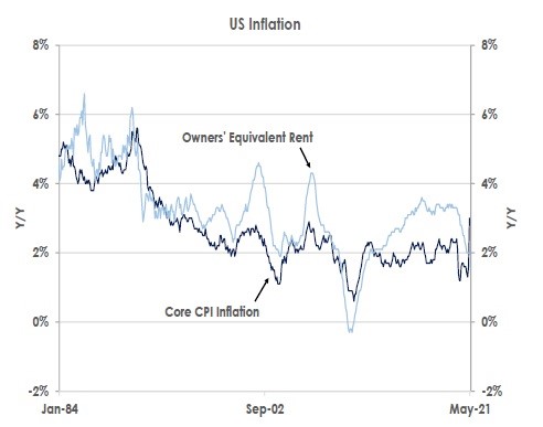 • If core inflation in May and June peaks near 3% before falling back towards 2% during the rest of 2021, then the Fed will support risk assets still by not tapering its bond buying this year.