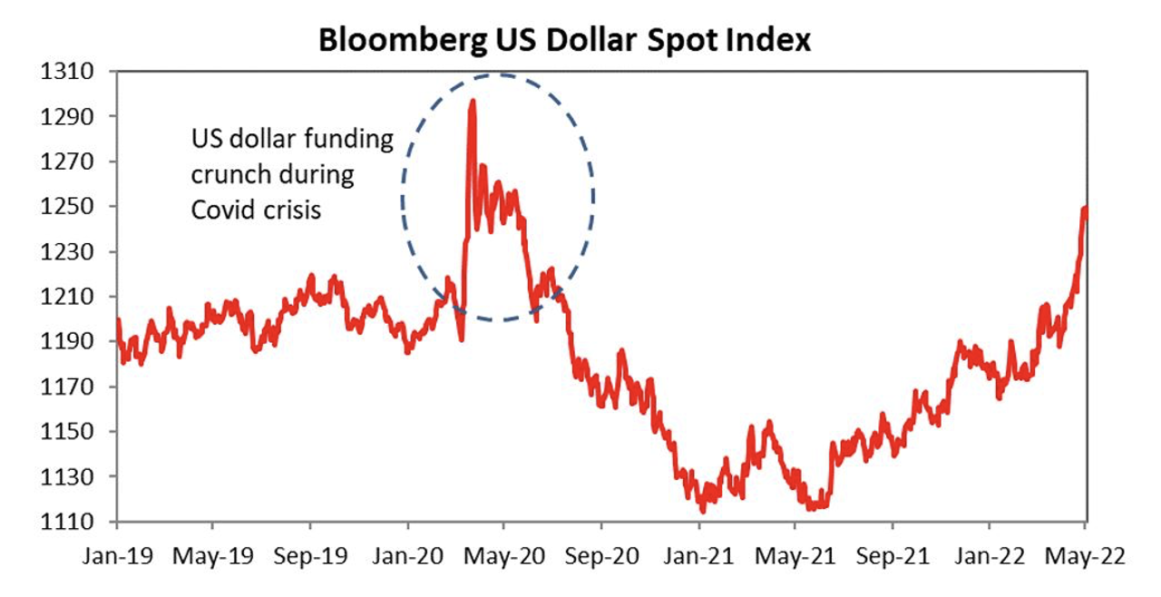 USD strength (local currency weakness) also poses challenges for debt servicing capabilities of countries with high levels of external debt and growing questions as to how they will finance their current account deficits, given rising import bills. Since the pandemic started, elevated levels of sovereign external debt have coincided with a fall in export earnings, exacerbated by disrupted supply chains.