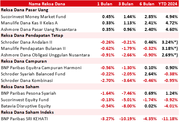 * ) Kinerja Reksa Dana sudah memperhitungkan dividen yang diterima selama tahun 2024