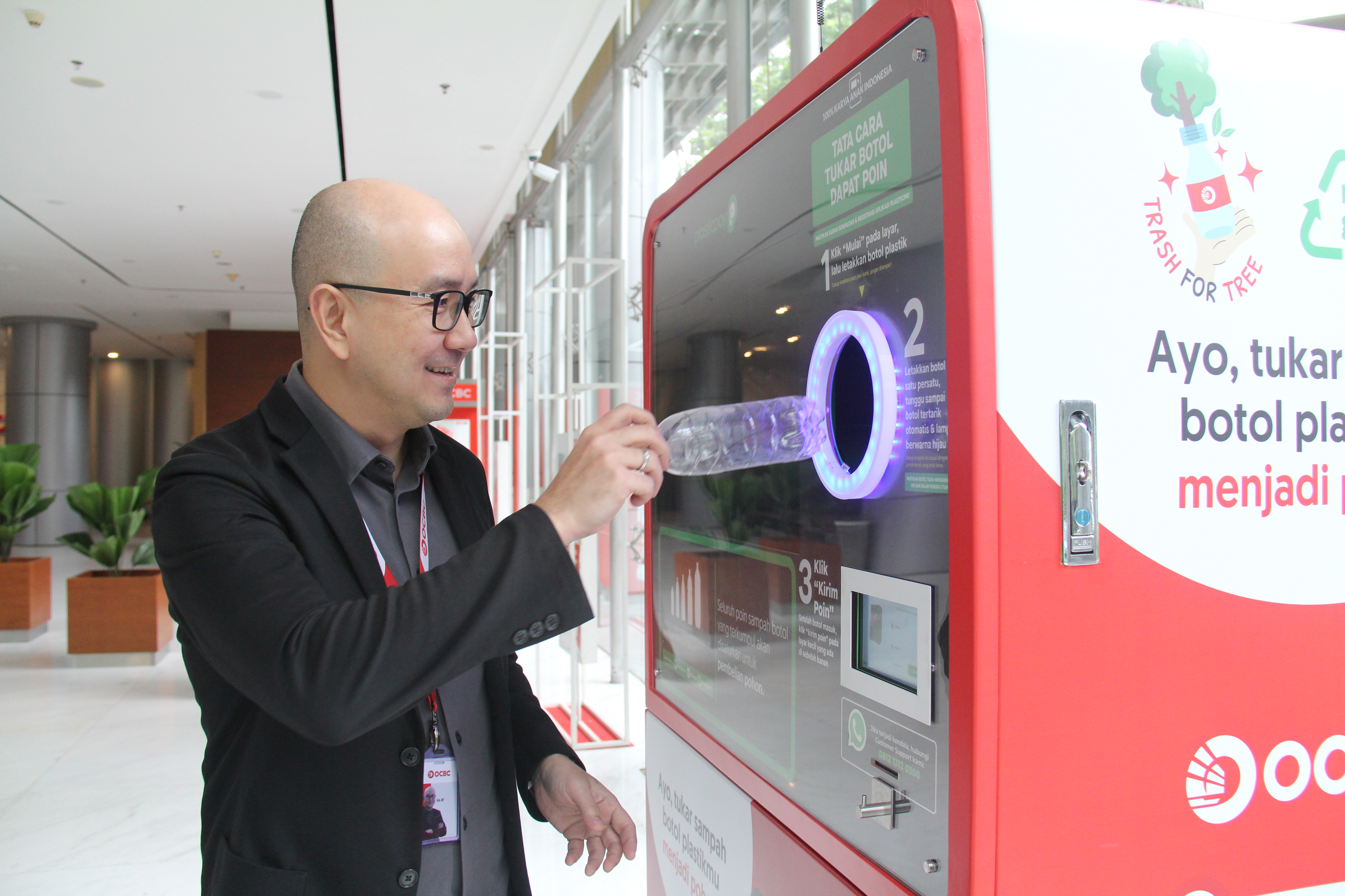 Dalam menangani situasi ini, OCBC menghadirkan #TrashforTree program, yang dimana Corporate Social Responsibility (CSR) OCBC bekerja sama dengan Plasticpay dalam penyediaan Reverse Vending Machine (RVM) di lobi kantor OCBC Tower sebagai bagian dari komitmen untuk menciptakan lingkungan yang lebih hijau.